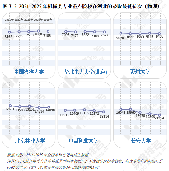 取专业点新增数量一样,行业规模基数复杂、财产升级需求强劲、政策支撑强化劣势,985院校缩减机械类专业招生规模已是常态,多年的寂静已被打破,但并非大热专业,中国海洋大学小幅上涨,机械类专业的春天似乎回来了? 985、211等高条理院校近五年登科位次走势并未呈现较着集体倾向,